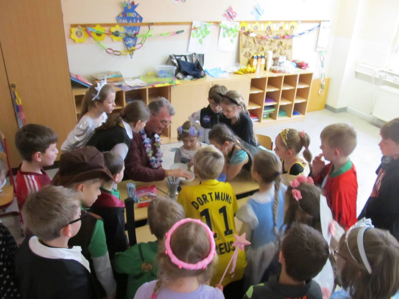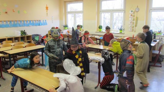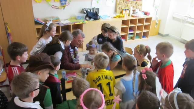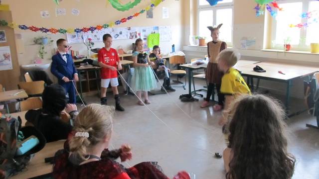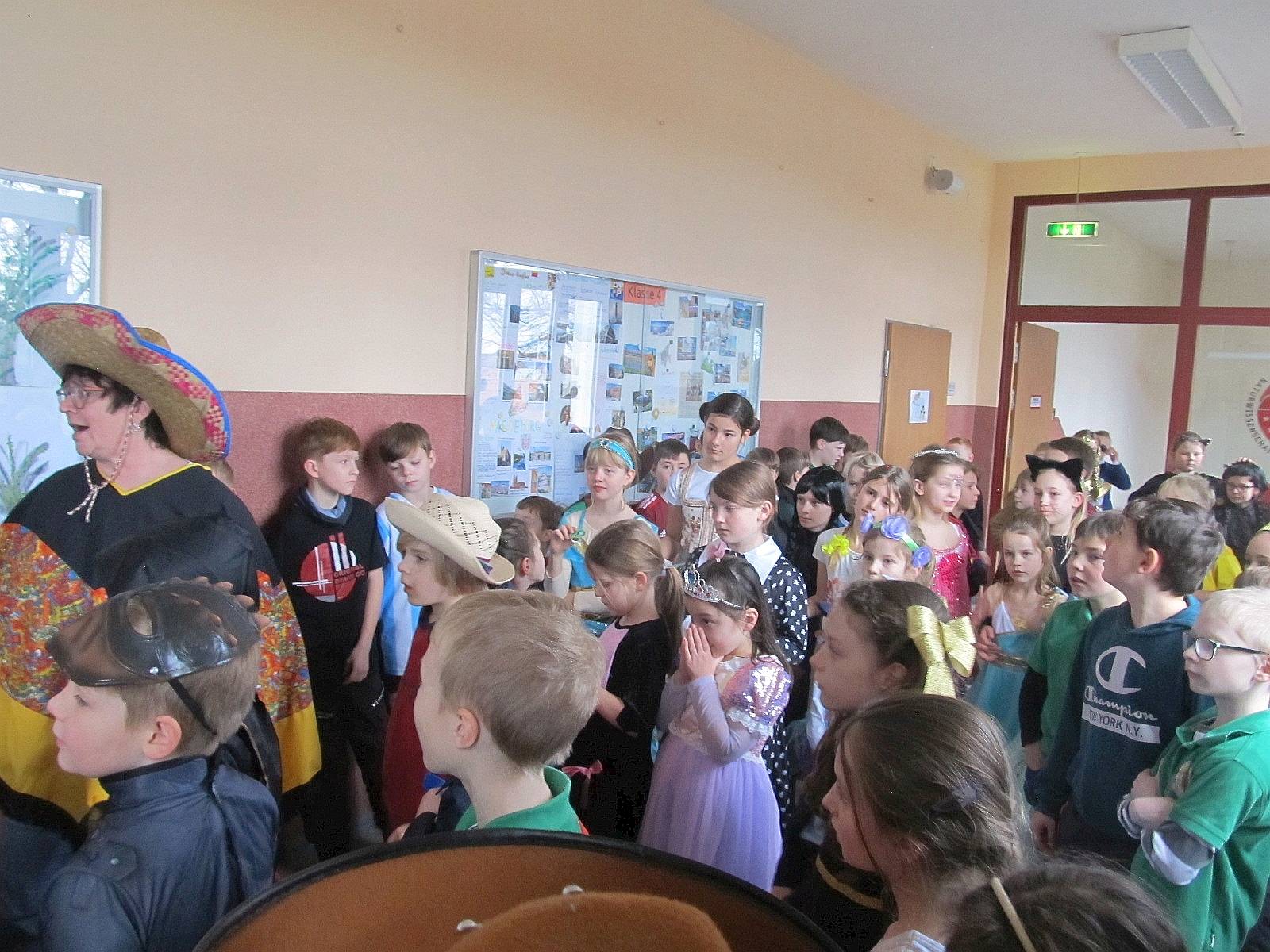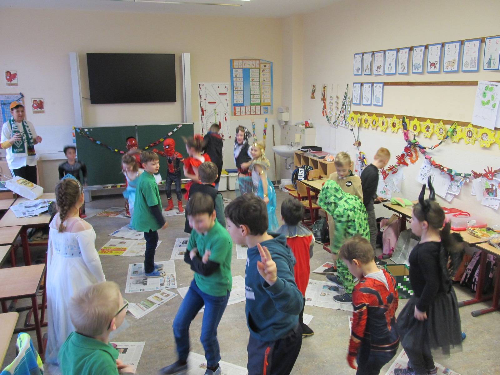 Aufgeregt, wie zu jeder Zeugnisausgabe waren alle Kinder auch an diesem besonderen, letzten Schultag im 1. Halbjahr. Jedoch nicht nur wegen der Zeugnisse, sondern auch in gespannter Erwartung auf das, was der Schulfasching in diesem Jahr so alles bieten würde. Zuerst trafen sich alle Schlaufüchse auf dem oberen Flur.