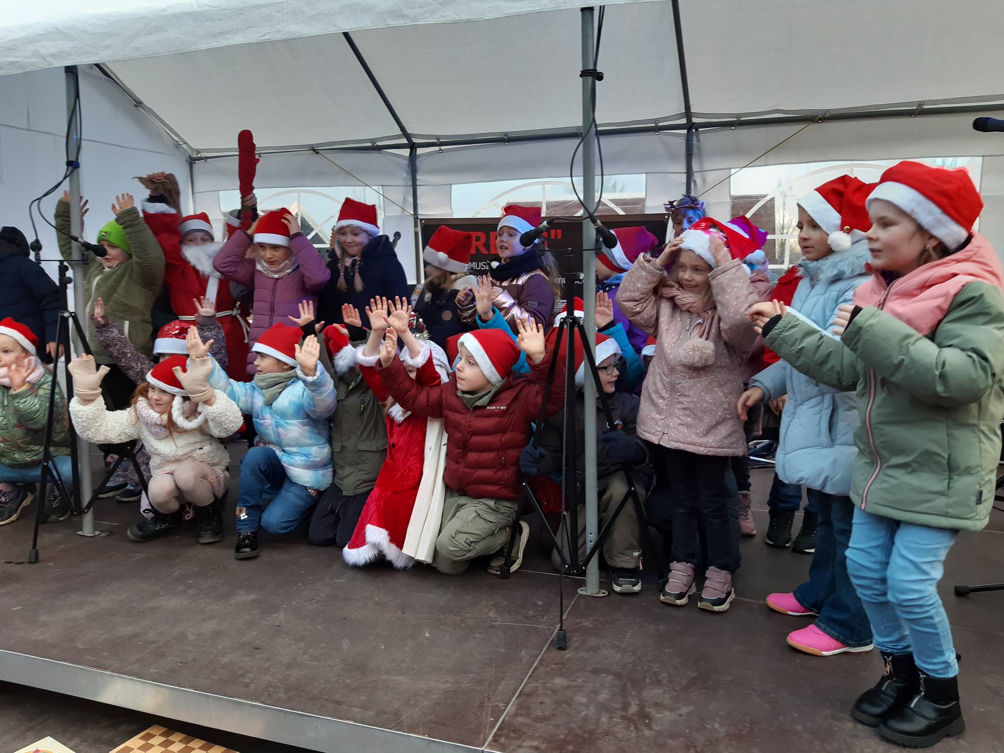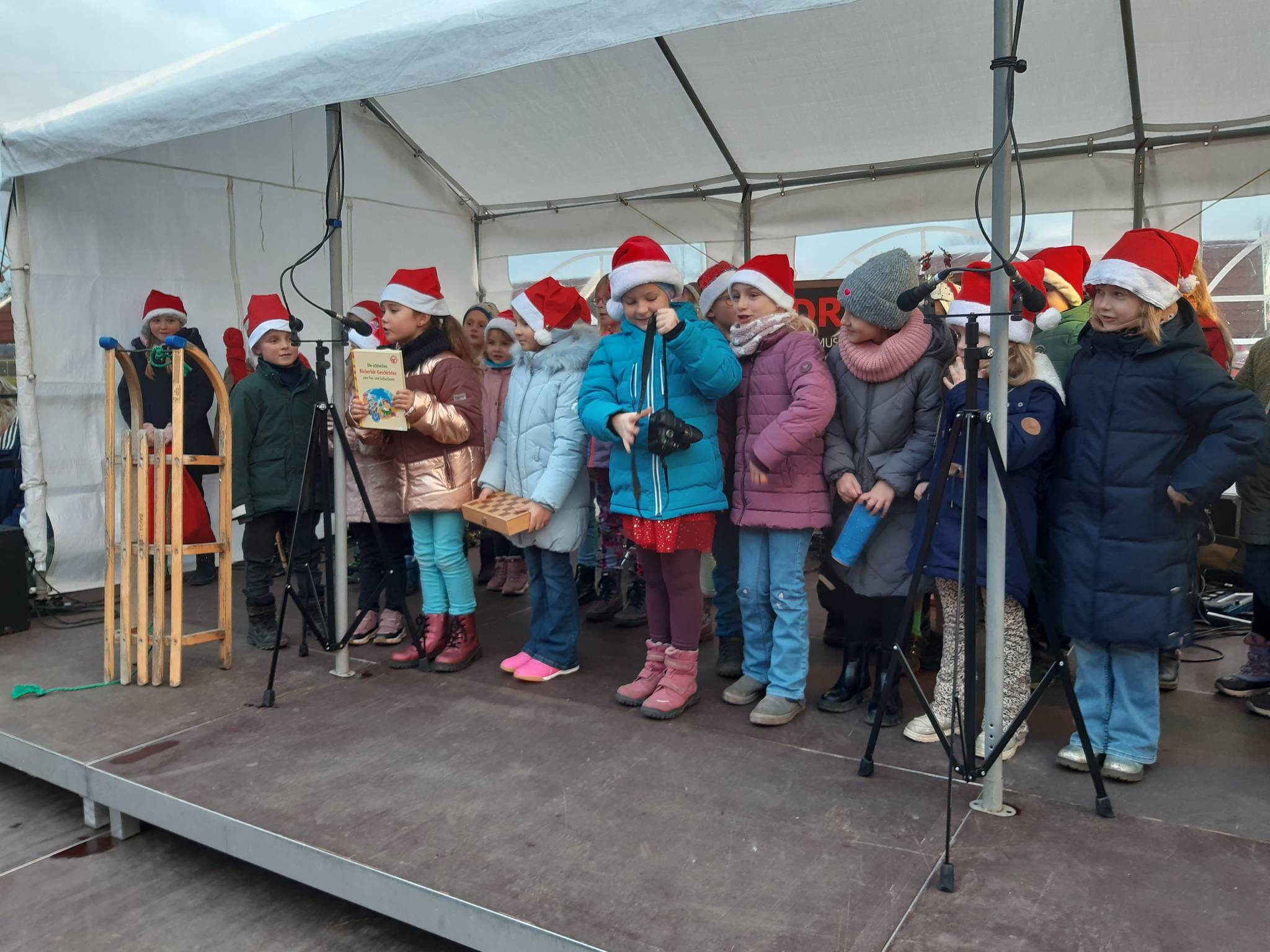 Alle Texte waren sicher und die Weihnachtsmütze aufgesetzt. Stolz standen alle auf der Bühne vor dem zahlreichen Publikum. Es wurde getanzt, gesungen und alles klappte. Für ihren gelungenen Auftritt erhielten die Kinder viel Applaus.