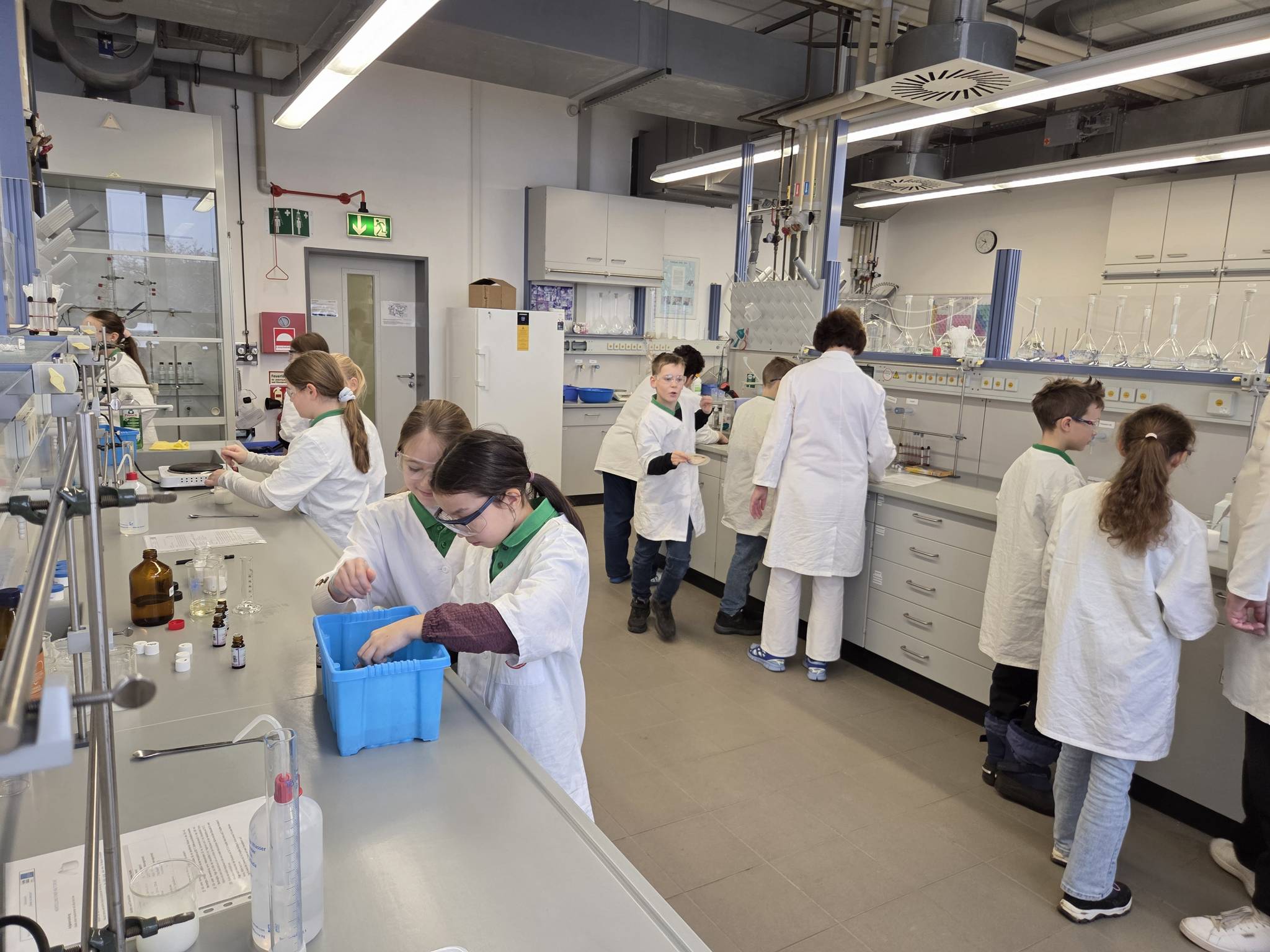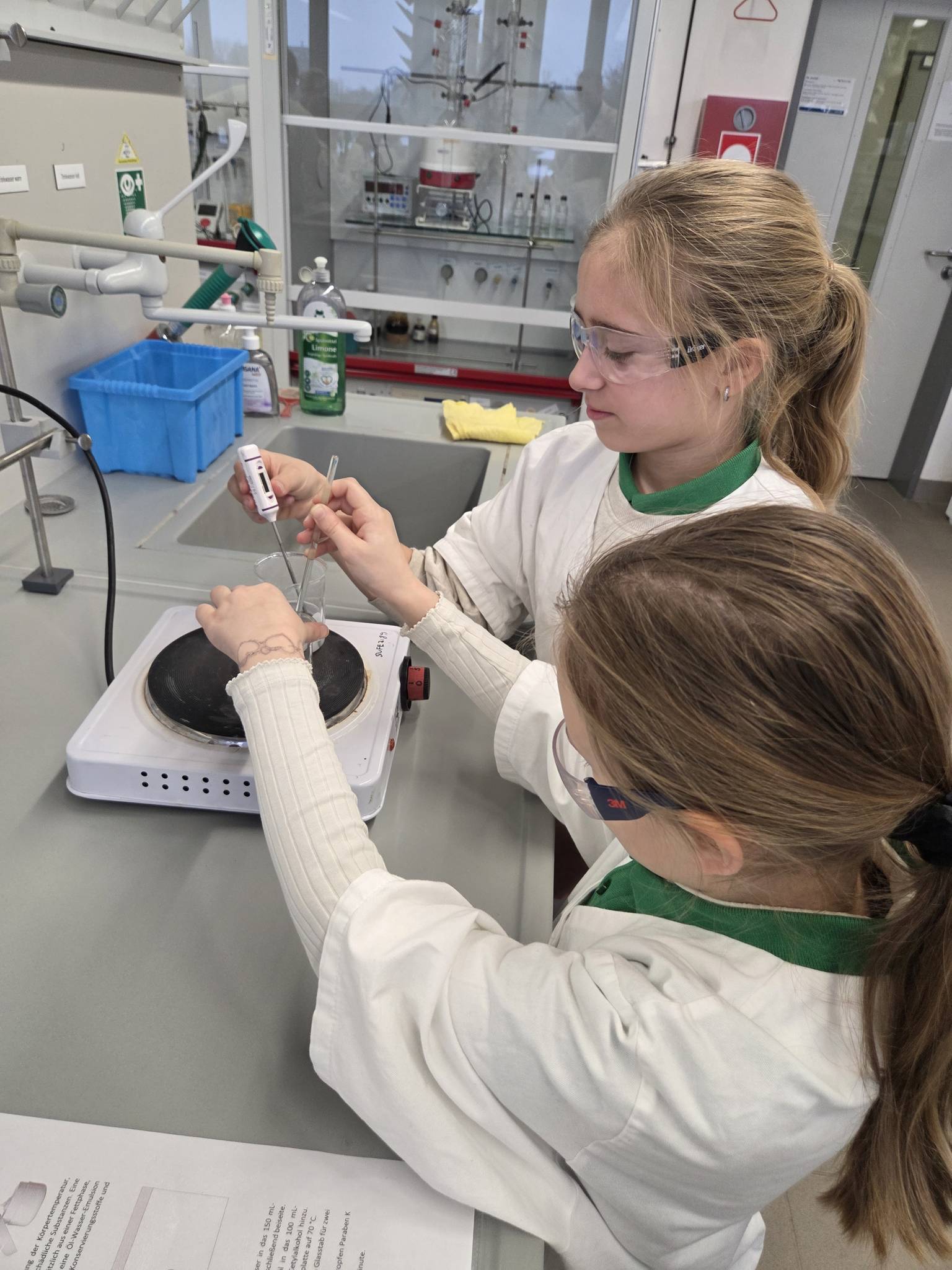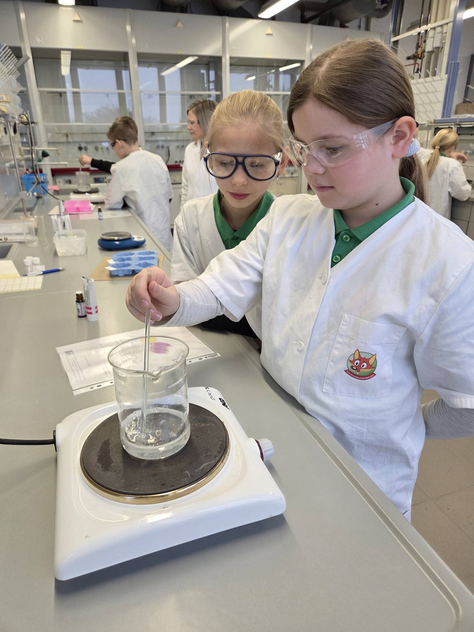 Als wir dann angekommen sind, haben wir noch Schutzkleidung angezogen, damit unsere Sachen nicht dreckig werden. Danach durften wir mehrere Experimente mit Hilfe von Fachleuten durführen. Es gab Stationen, wo man auch selbstgemachte Gegenstände mitnehmen konnte, z.B.: Selbst hergestellte Labelos, Seife, Badesalz und Handcreme. Bei den Labelos haben wir Sonnenblumenöl, Kakaobutter und Bienenwachs gebraucht. Dann haben wir das Ganze erhitzt und abkühlen lassen. Zuhause mussten wir die Labelos nochmal in den Kühlschrank stellen, damit sie aushärten. Wir haben uns sehr über die Exkursion gefreut und fanden es schade, dass wir wieder gehen mussten. Am Ende der Exkursion sind wir gemeinsam mit unserem Lehrer zurück zur Schule gefahren.