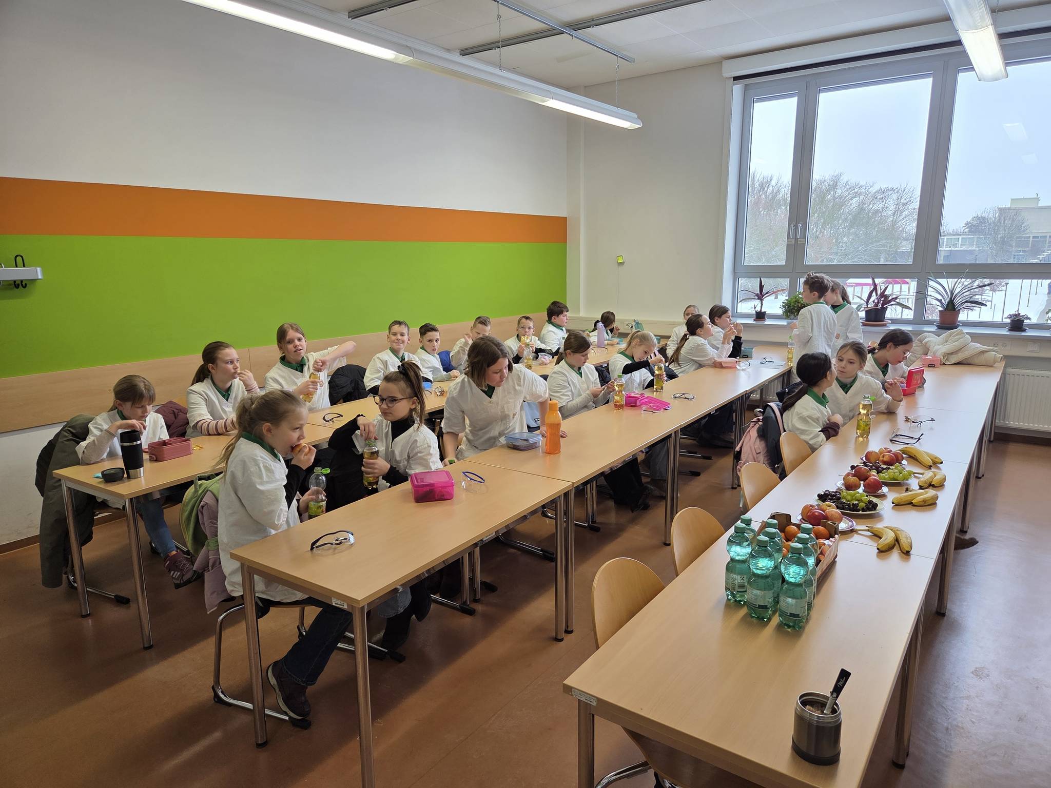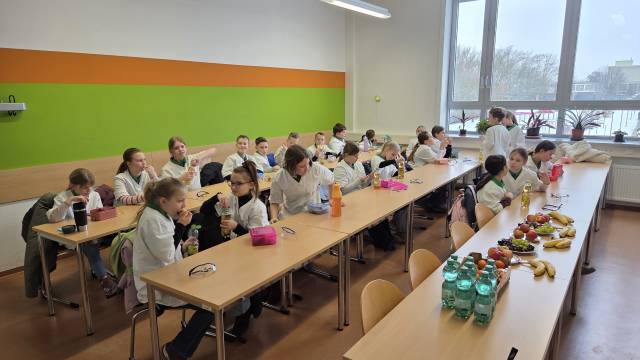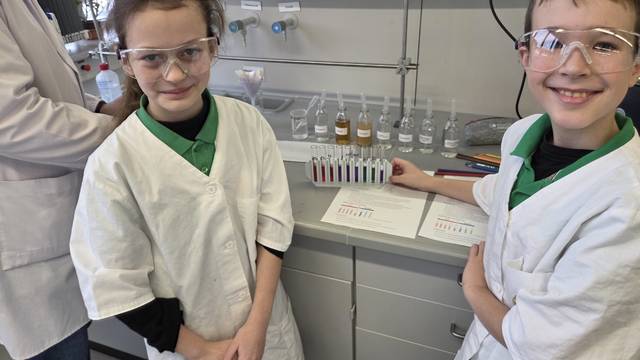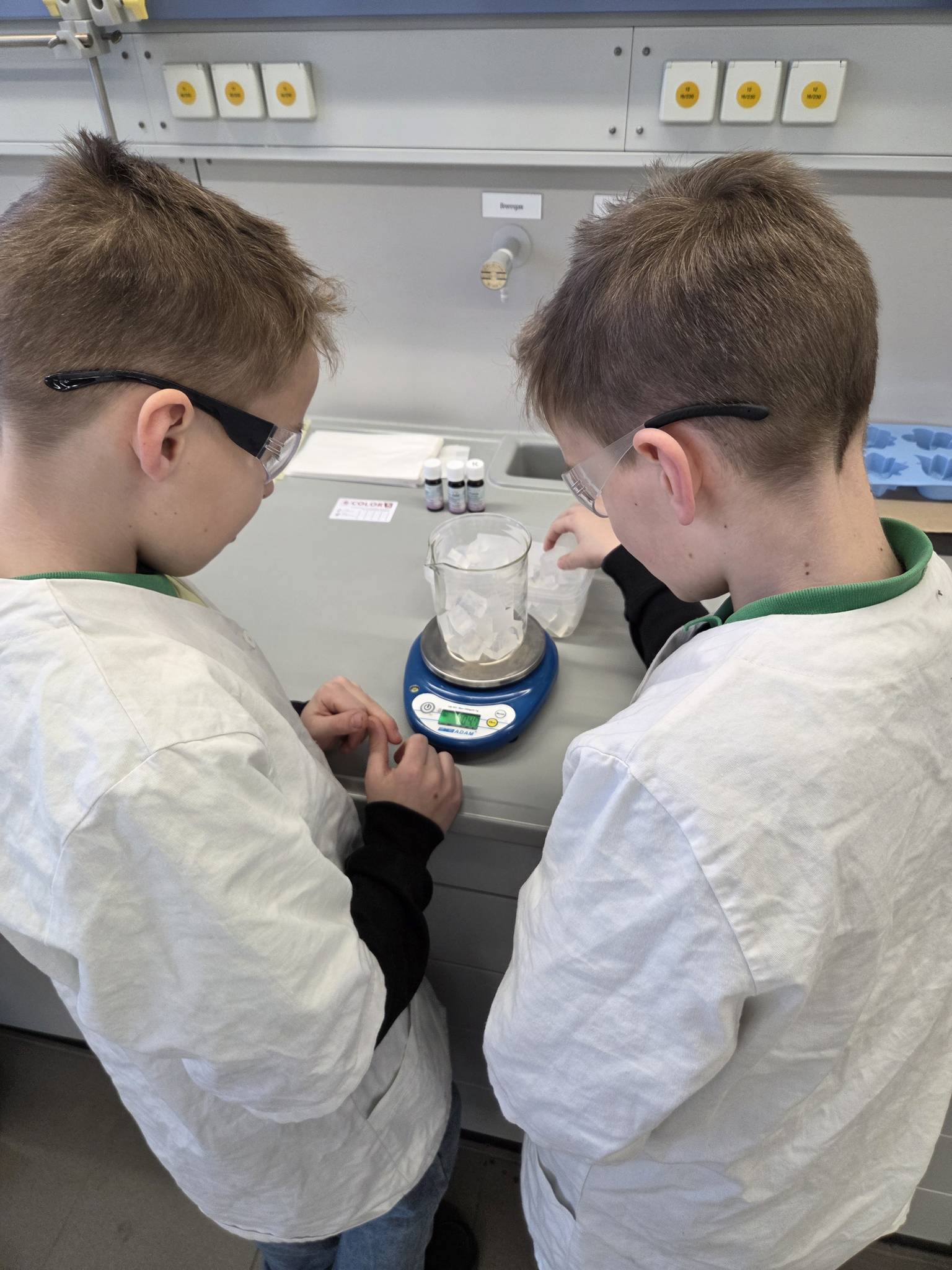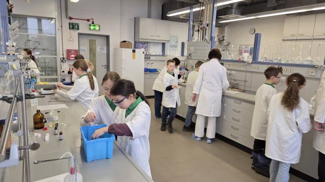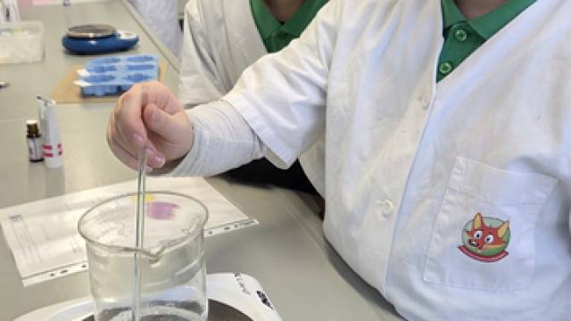 Als wir dann angekommen sind, haben wir noch Schutzkleidung angezogen, damit unsere Sachen nicht dreckig werden. Danach durften wir mehrere Experimente mit Hilfe von Fachleuten durführen. Es gab Stationen, wo man auch selbstgemachte Gegenstände mitnehmen konnte, z.B.: Selbst hergestellte Labelos, Seife, Badesalz und Handcreme. Bei den Labelos haben wir Sonnenblumenöl, Kakaobutter und Bienenwachs gebraucht. Dann haben wir das Ganze erhitzt und abkühlen lassen. Zuhause mussten wir die Labelos nochmal in den Kühlschrank stellen, damit sie aushärten. Wir haben uns sehr über die Exkursion gefreut und fanden es schade, dass wir wieder gehen mussten. Am Ende der Exkursion sind wir gemeinsam mit unserem Lehrer zurück zur Schule gefahren.
