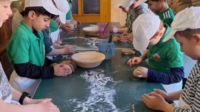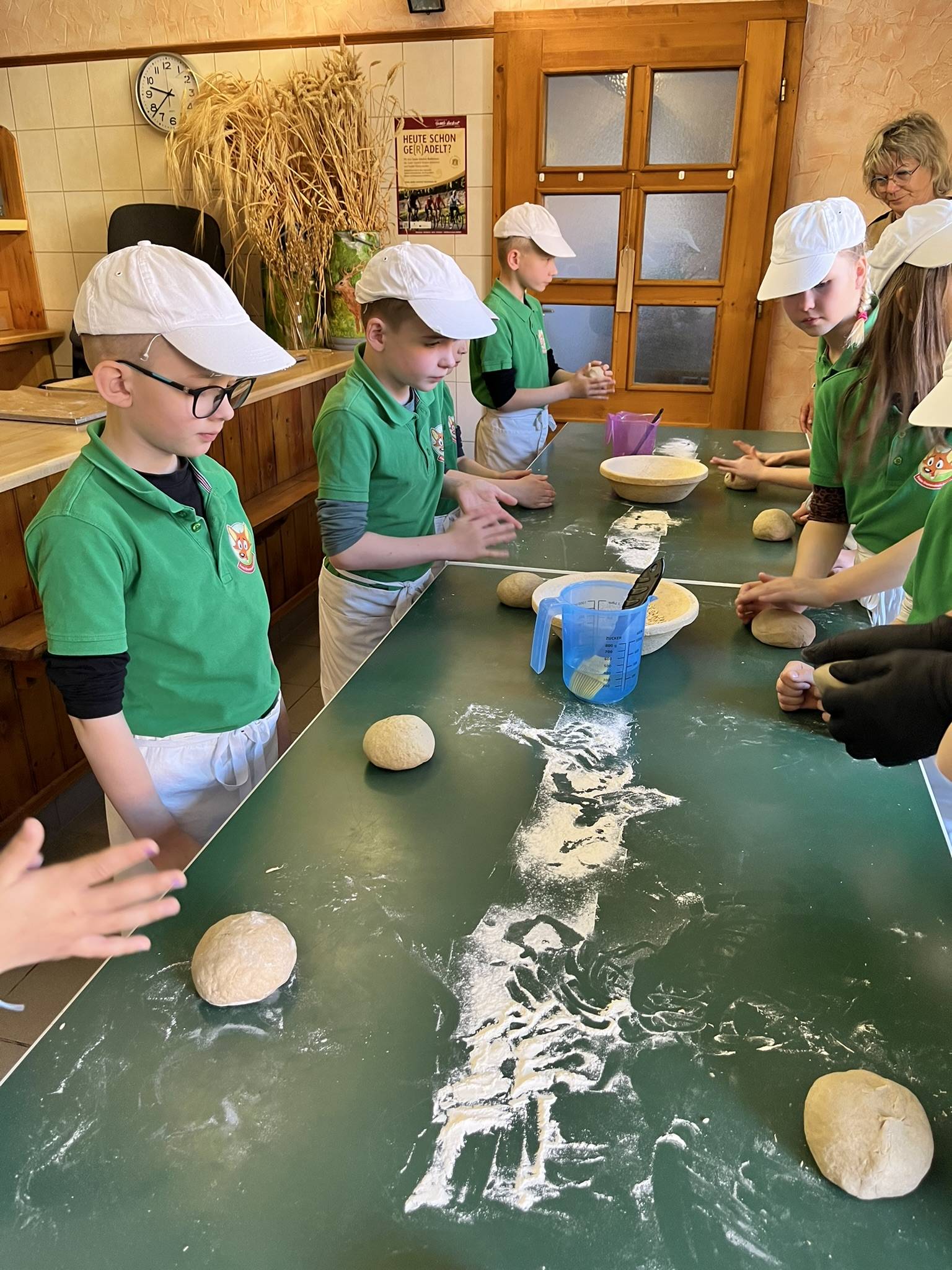 Am Mittwoch dem 8.4.2026 sind die Klasse 2A und 2B zum Wünscher Landhof gefahren. Man konnte Kräuterquark mit Petersilie und Schnittlauch machen und Apfelsaft mit einer uralten Maschine pressen und Brot mit Wasser, Hefe, Mehl, Salz und Liebe machen. Es gab auch einen großen Hof. Wir waren auch beim Schuhmacher.