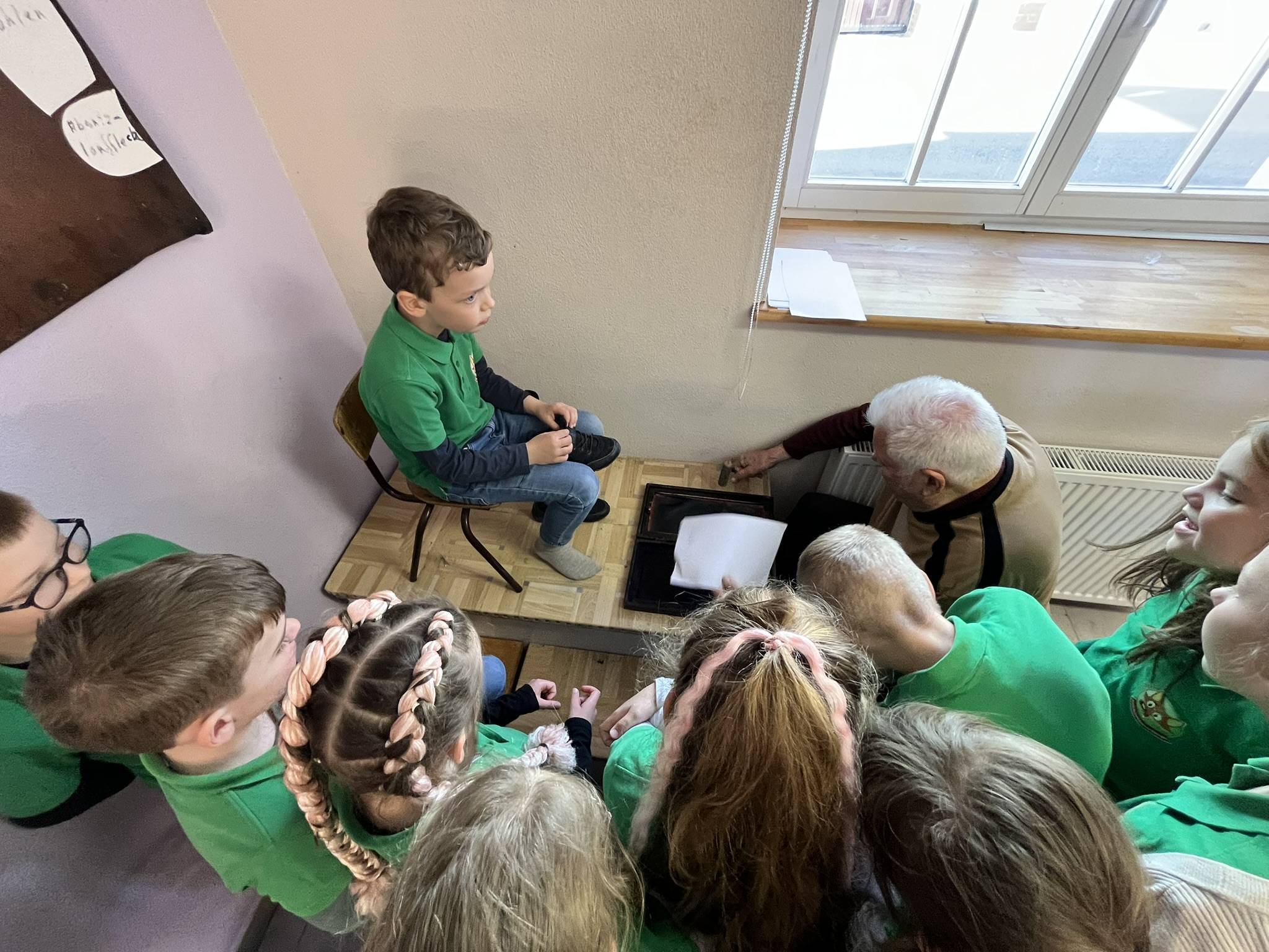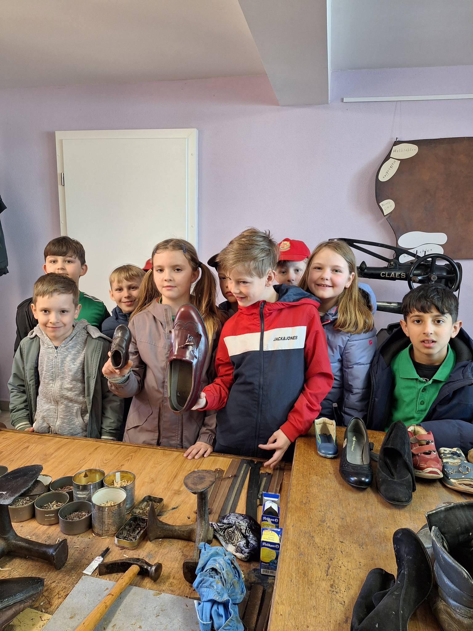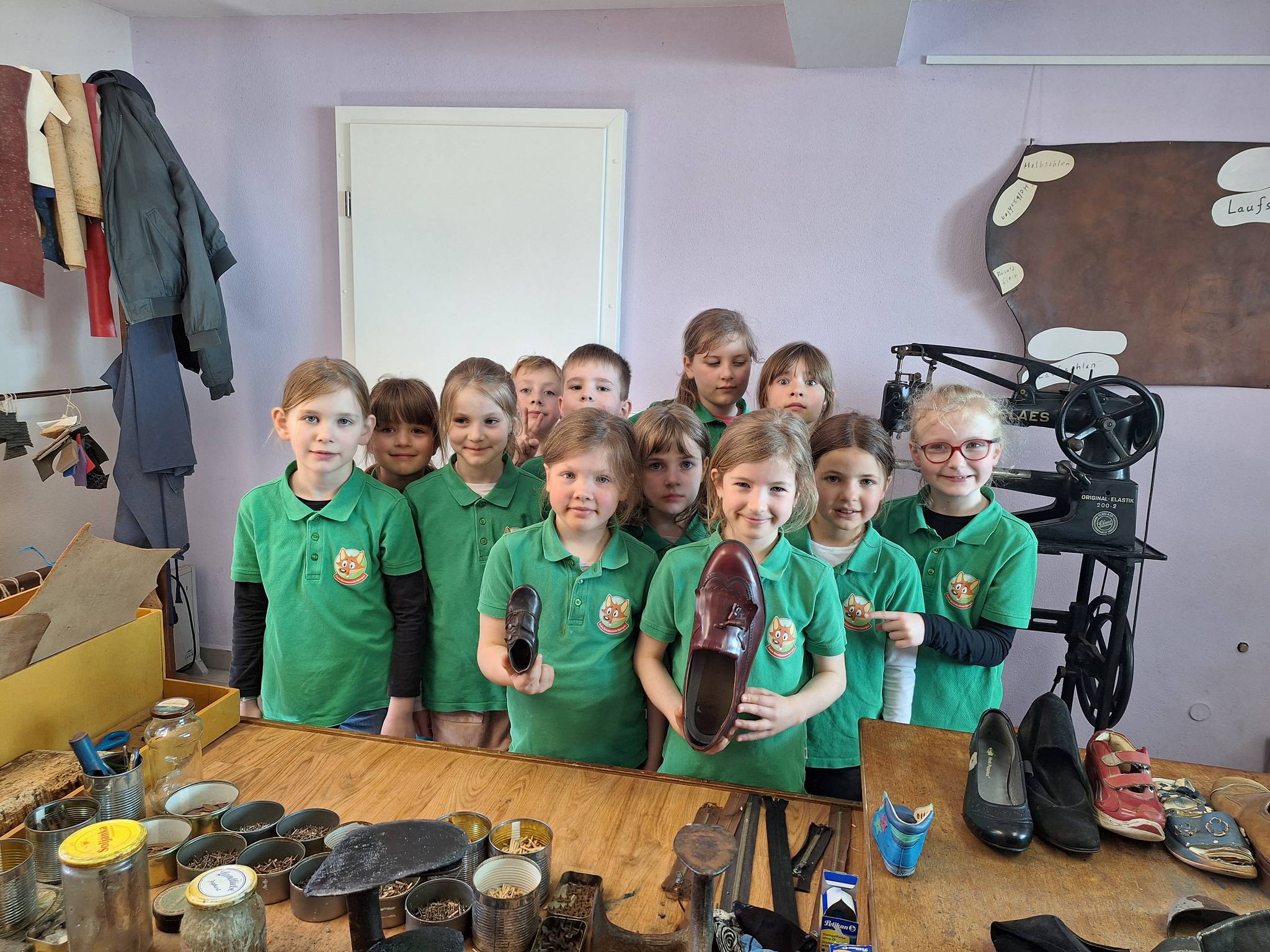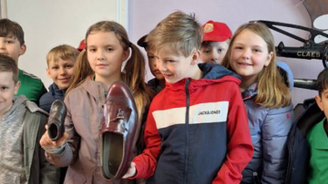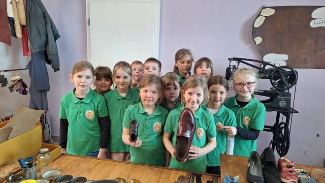 Als wir da waren, haben wir ein tolles „Hallo“ bekommen und wir, die Klasse 2a und 2b, wurden in 2 Gruppen aufgeteilt. Es gab 4 Stationen : Apfelmus machen, Kräuterquark, Brot backen und ein Besuch beim Schuhmacher. Es gab auch einen sehr schönen Hof im hinteren Garten.Sie haben auch 2 sehr schöne Pferde dort. Hinter der Straße ist ein kleiner Fitnesspfad. Zum Brotbacken benötigen wir Hefe, Mehl, Salz und Wasser und ganz viel Liebe.Für Apfelmus und Apfelsaft brauchten wir eine fast 100 Jahre alte Maschine.Bei dem Schuhmacher haben wir uns eine ganz alte Nähmaschine angesehen und haben geschaut, wie man eine Schuhsohle repariert und haben unseren eigenen Fußabdruck gemacht. Die kleinste Schuhgröße ist 17. Und die größte ist 60. Die war groß. Dann war der Kräuterquark dran. Wir brauchten Schnittlauch und Petersilie und was zum Schneiden. Wer wollte Salz und Pfeffer . Auf jeden Fall war es sehr, sehr schön. Eigentlich gab es noch mehr Attraktionen, aber wir hatten nur diese gebucht. Am Ende haben die Klassen 2b und 2a und unsere Lehrerin Staffellauf gemacht.