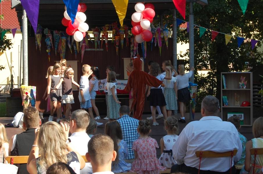 Am 19. August war es wieder soweit - die Freie Grundschule Spergau begrüßte die neuen ABC-Schützen mit Ihren Eltern, Großeltern und Geschwistern zur feierlichen Schuleinführung. Seit langem fieberten die Kinder diesem bedeutenden Tag entgegen, mit dem für sie und ihre Eltern ein neuer Lebensabschnitt beginnt. Bevor die Kinder ihre Plätze auf dem Schulhof einnahmen, eroberten sie ihren Klassenraum und lernten ihre neue Lehrerin Frau Dassig und ihren Lehrer Herrn Kuhnert kennen. Nach der Begrüßung der ABC-Schützen durch die Schulleiterin Frau Dierks, führten die ehemaligen beiden ersten Klassen jeweils ein kleines Programm auf. Unterstützt von den Klassenlehrern der 2a und der 2b, Frau Gebert und Herrn Rübner, erzählten die Schülerinnen und Schüler die Geschichte vom Schlaufuchs, der die Einschulung besuchte. Danach überreichte Frau Dierks den ABC-Schützen die knallroten Schlaufuchskappen. Zum Ende der Veranstaltung wurden die Zuckertüten überreicht. Stolz präsentierten die Schülerinnen und Schüler die fantasievollen und prallgefüllten Zuckertüten. Ab Montag, dem 21. August, beginnt für die Grundschüler der normale Schulalltag. Auf dem Stundenplan stehen dann neben Lesen, Schreiben, Rechnen und verschiedenen weiteren Grundlagenfächern auch die Fächer Englisch und Einführung in die Naturwissenschaften sowie verschiedene unterrichtsergänzende Arbeitsgemeinschaften am Nachmittag. Die Freie Grundschule Spergau sowie die CELOOK Schulträger GmbH bedanken sich bei allen Mitarbeitern, Helfern, dem Hausmeister sowie der Gemeinde Spergau, die die Einschulungsveranstaltung organisiert und vorbereitet haben. Schulträger und Team der Freien Grundschule Spergau