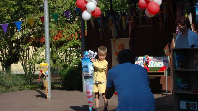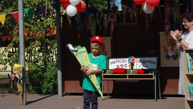 Mit strahlenden Gesichtern an einem strahlenden Sommertag nahmen unsere Erstklässler ihr Zuckertüten entgegen.