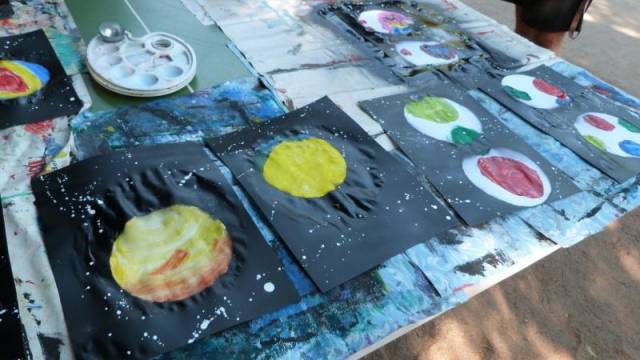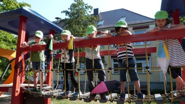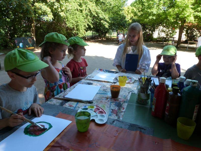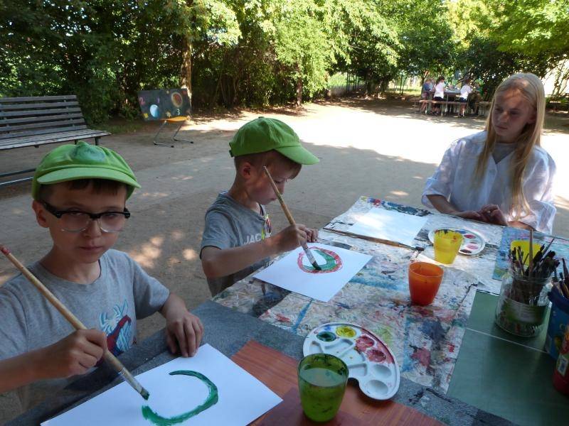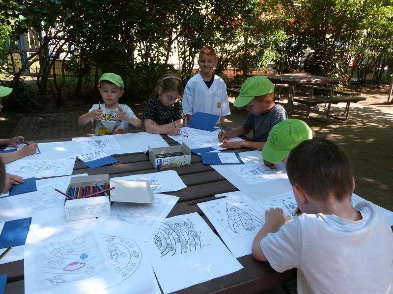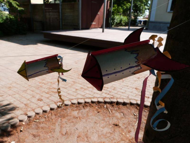 Kitakinder aus Merseburg und Spergau kamen mit ihren Erzieherinnen auf unseren Schulhof. Die Horterzieher und die Kinder der AG „Haus der kleinen Forscher“ hatten ihre Stationen bereits aufgebaut und begrüßten die neugierigen Gäste. Der Forschertag stand im Zeichen des „Weltraums“, es gab eine Station ähnlich einem Observatorium. Da konnten die Kinder mit einem Fernglas Symbole und Zahlen auf einem entfernten Planetenschild erkennen und benennen. Außerdem gab es eine Station mit Fallschirmen, eine weitere, bei der die Gewichtsunterschiede Erde/Mond erklärt wurden, dort konnten die Kinder verschiedene Taschen mit Gewichten heben, um zu erspüren, wie sich hier auf der Erde alles 6x schwerer anfühlt. An der nächsten Station konnten sich die Kinder unter fachmännischer Anleitung ein tolles Weltraumgraffitibild gestalten. An einer weiteren Station konnte man Raketen fliegen lassen und an einer Malstation verschiedene Weltraumbilder farbig ausmalen. Die Kinder hatten viel Freude, hörten aufmerksam zu und probierten alle Stationen aus. Jedes Kind bekam einen Forscherpass, mit dem man Stempelpunkte sammeln konnte und am Ende gab es ein Forscherdiplom, welches sich jedes Kind voller Stolz auf der Bühne abholte. Wir hoffen, im nächsten Jahr wieder neugierige Kitakinder begrüßen zu dürfen.