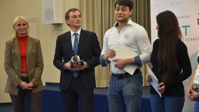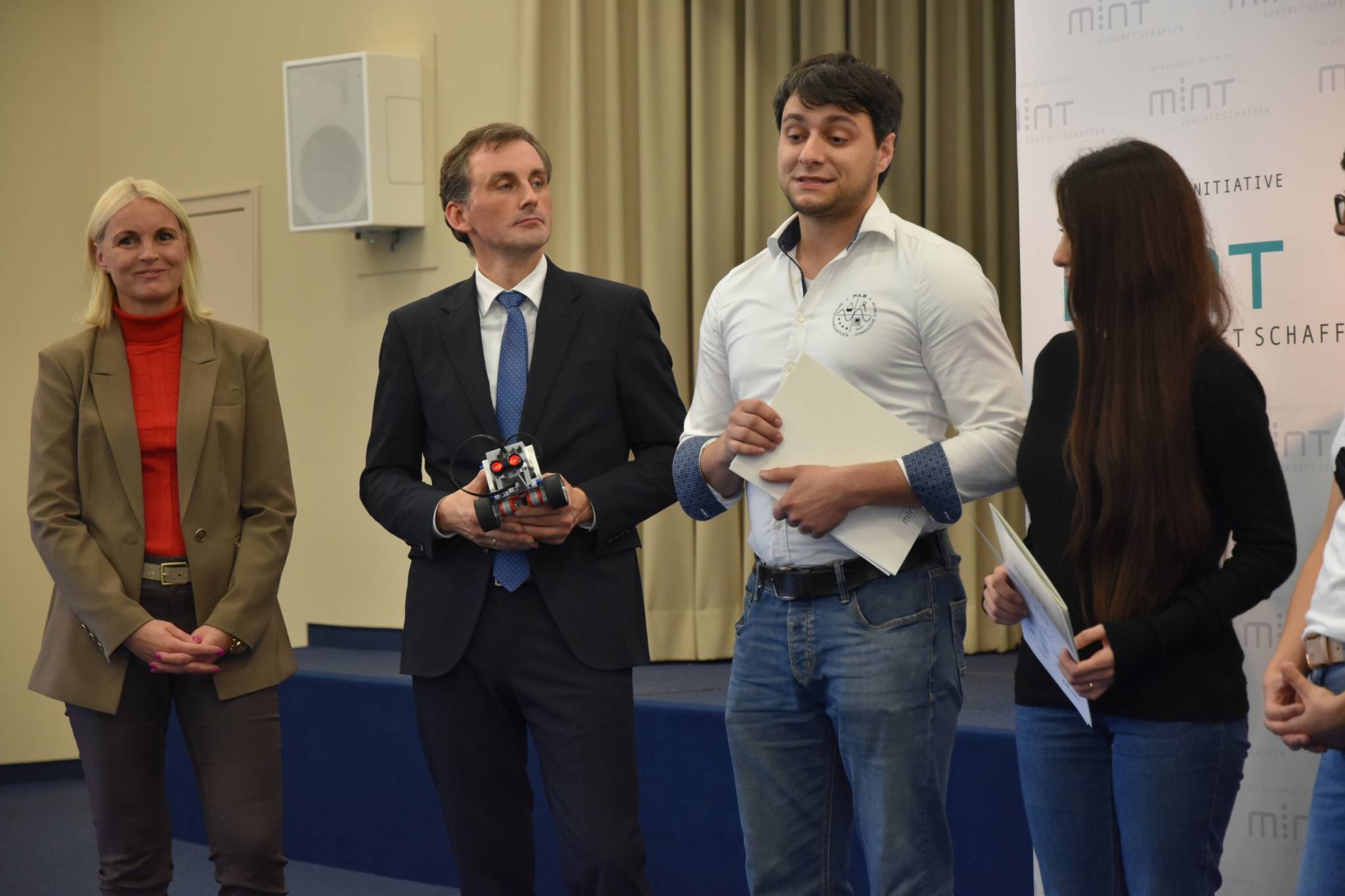 Die Urkunden wurden vom Bildungsminister des Landes Sachsen-Anhalt Jan Riedel überreicht. Gastredner waren zudem Stefanie Klemmt (Geschäftsführerin Berufsbildung, IHK Magdeburg) und Prof. Dr. Christoph Meinel (Vorsitzender MINT Zukunft e.V.). Die Vertreterinnen und Vertreter der ausgezeichneten Schulen (in unserem Fall Frau Shahouri und Herr Bauer) hielten kurze Reden um das MINT-Angebot der jeweiligen Schule kurz zu umreißen.