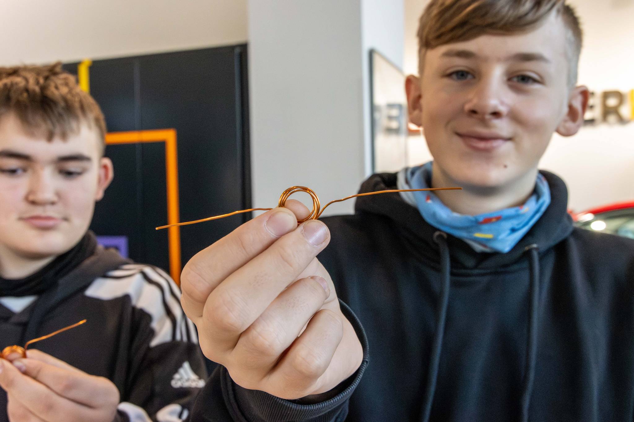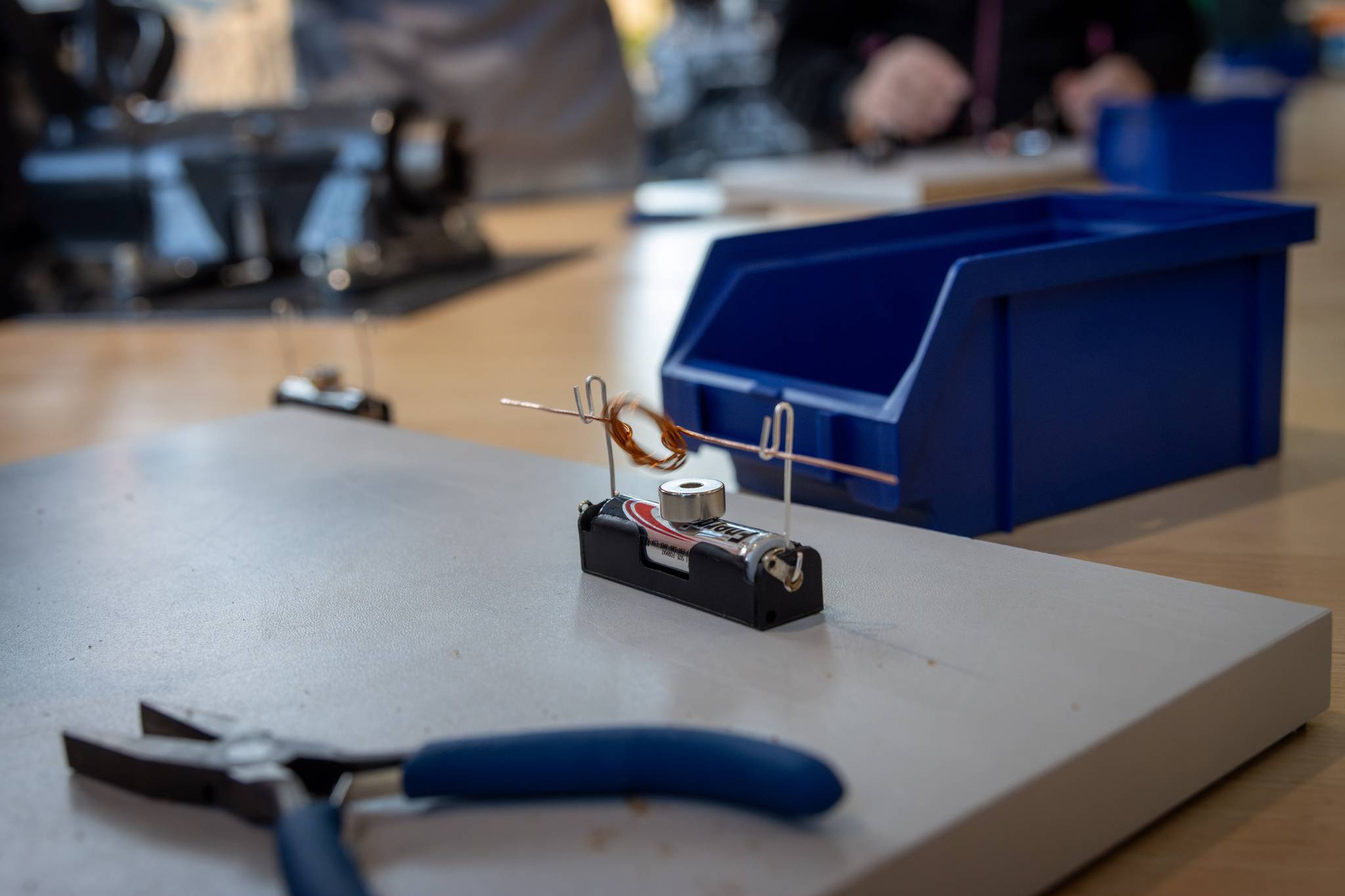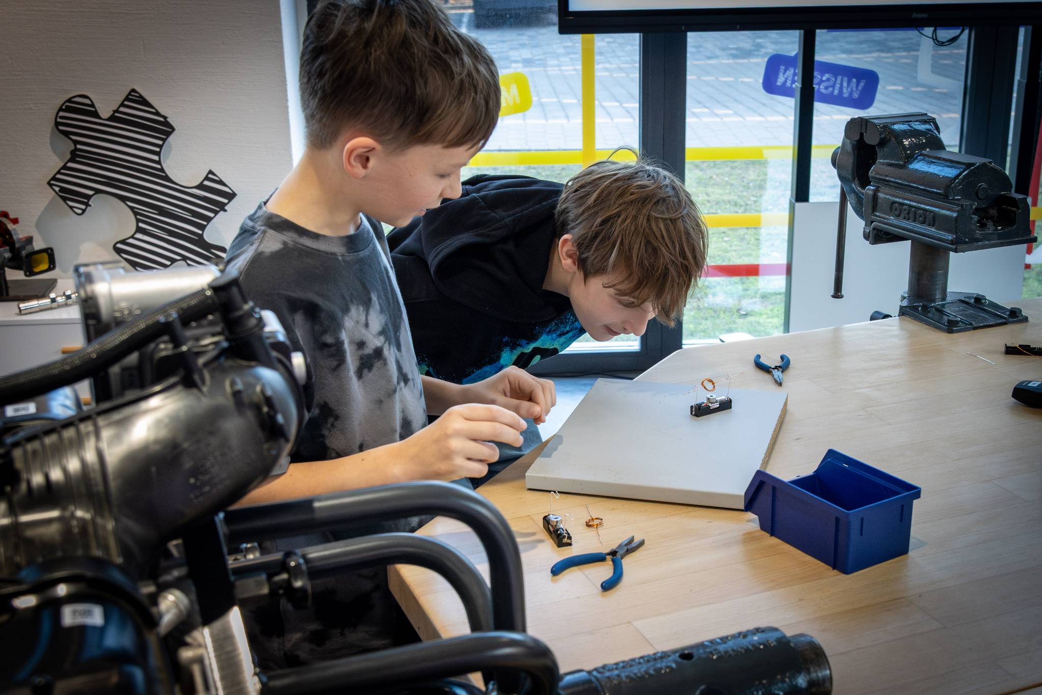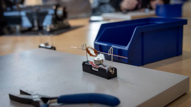 Fahren mit Strom – Elektroantrieb & Hybridtechnik: Die Schüler lernten die Unterschiede zwischen Verbrennern, Hybriden und reinen Elektroautos kennen. Ein Highlight war der Bau eines eigenen kleinen Elektromotors.