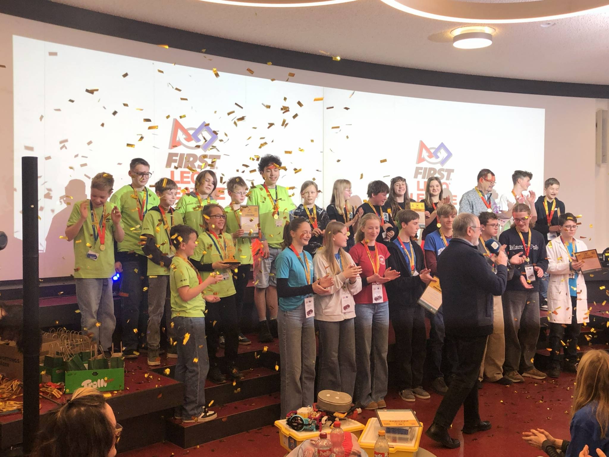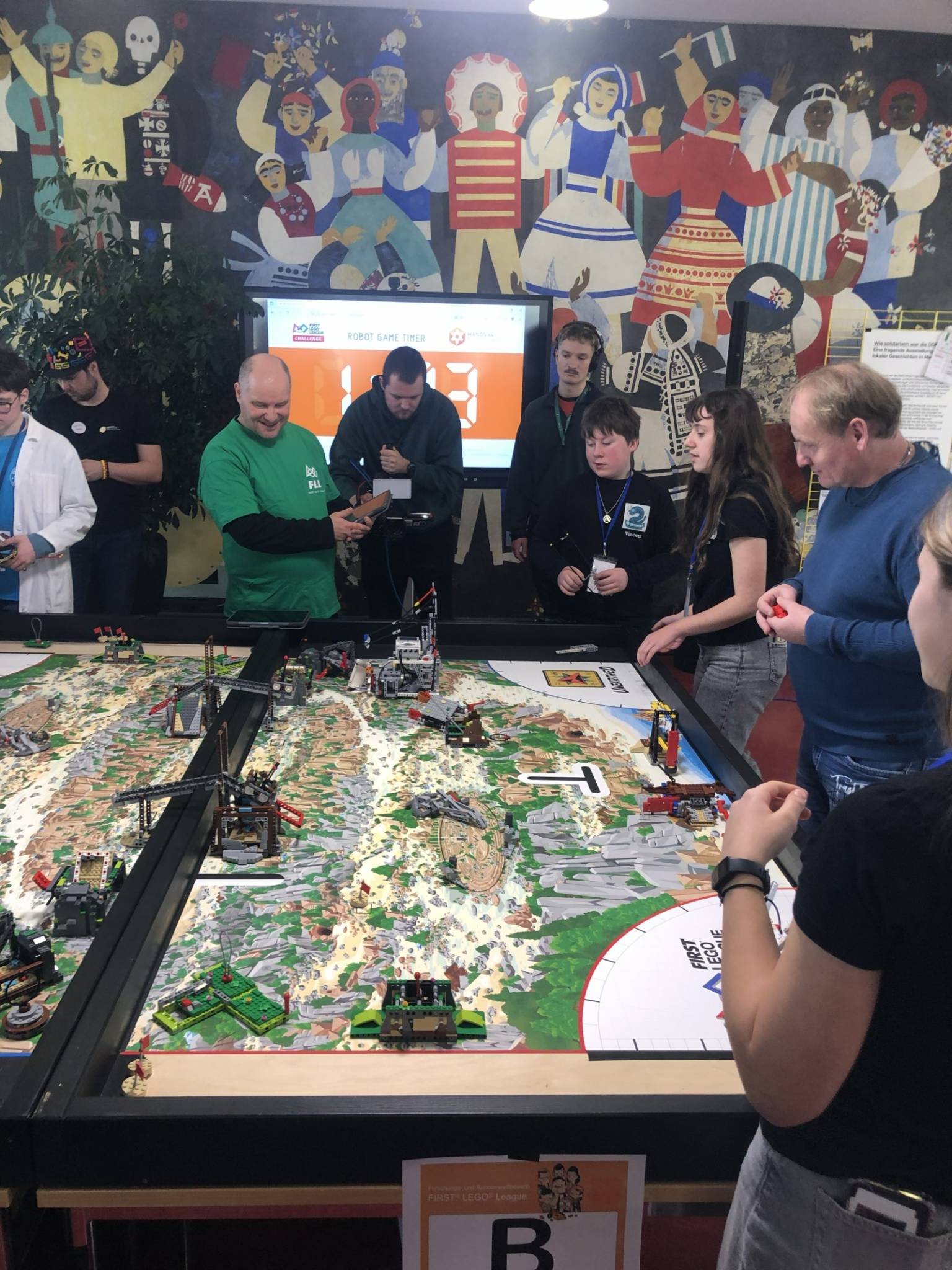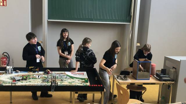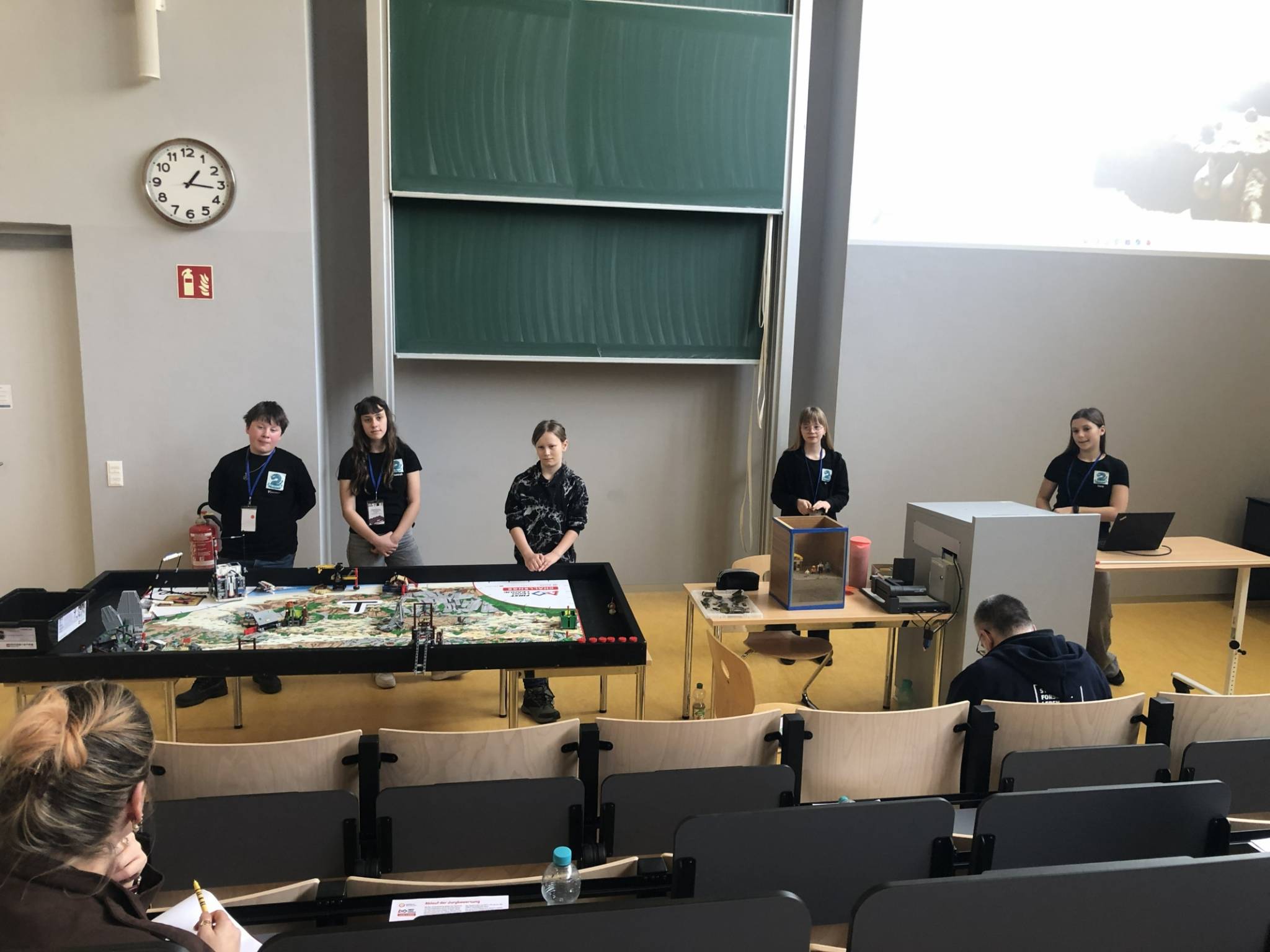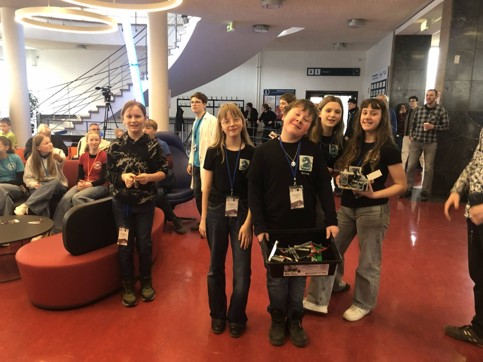 Als kleinstes und insgesamt jüngstes Team – alle Schülerinnen und Schüler gehen in die 6. Klasse – traten wir in verschiedenen Disziplinen gegen insgesamt 10 andere Teams im FLL-„Challenge“-Wettbewerb an. Zum diesjährigen Thema „Archäologie“ galt es, kniffelige Aufgaben mit einem zuvor gebauten und programmierten, autonom fahrenden LEGO-Roboter zu lösen, aber auch in einem Vortrag die Professoren der Hochschule davon zu überzeugen, dass man sich mit dem Thema Archäologie auseinandergesetzt hatte. In vielen Stunden hatten sich die Schüler des Teams mit dem Programmieren und Bauen des Roboters befasst, hatten ein Modell einer Ausgrabungsstätte gebaut und selbst eine archäologische Grabung durchgeführt. Am Ende durften sie sich über eine Anerkennung in der Disziplin „Roboterdesign“ und einen zweiten Platz in der Hauptdisziplin „Roboterwettkampf“ freuen – eine hervorragende Leistung im Wettkampf gegen viele ältere und erfahrenere Teams.