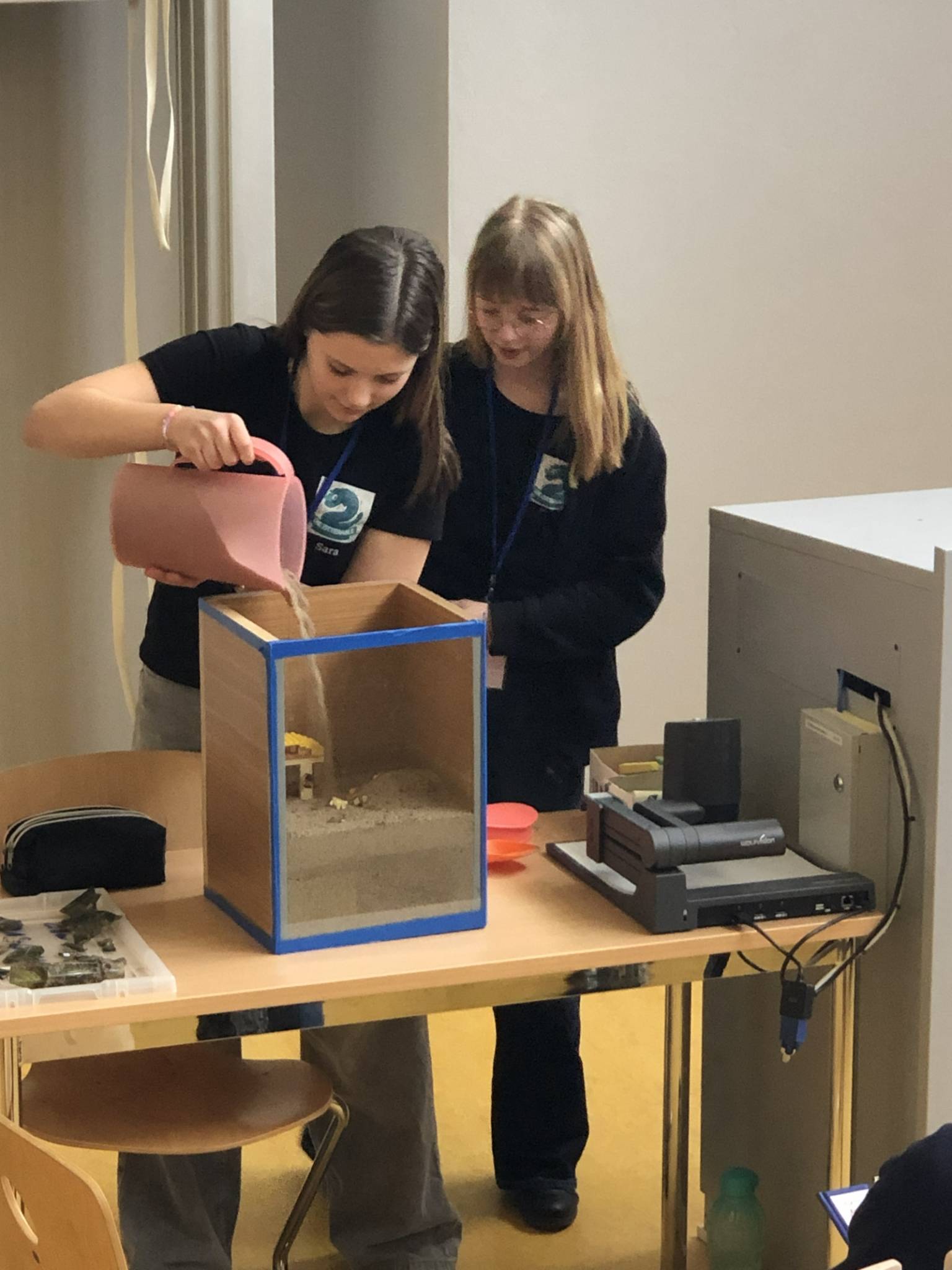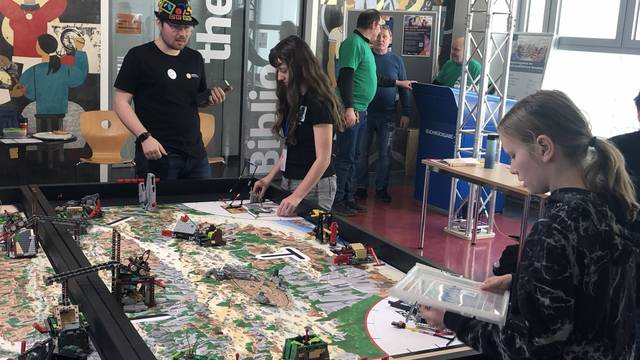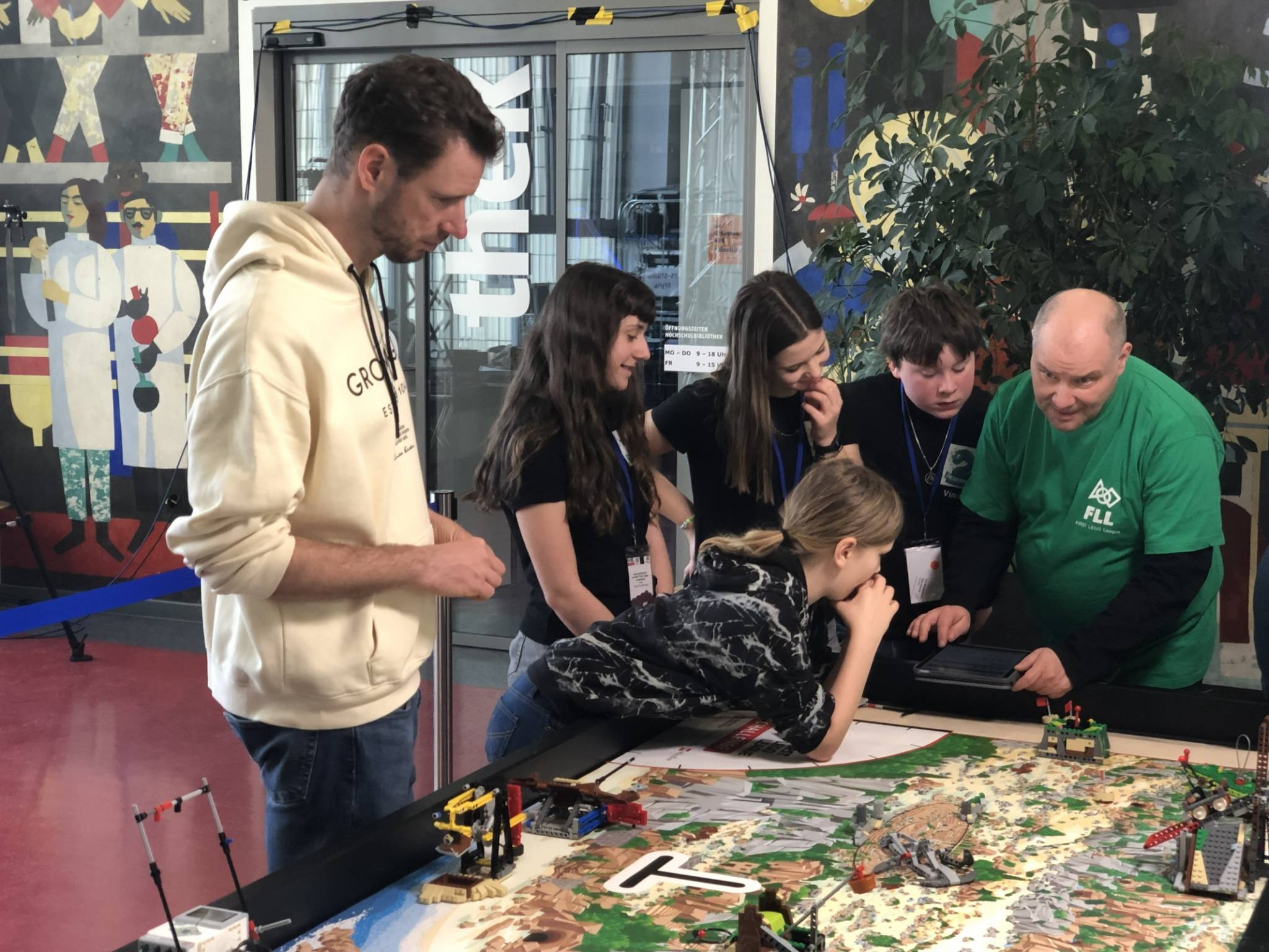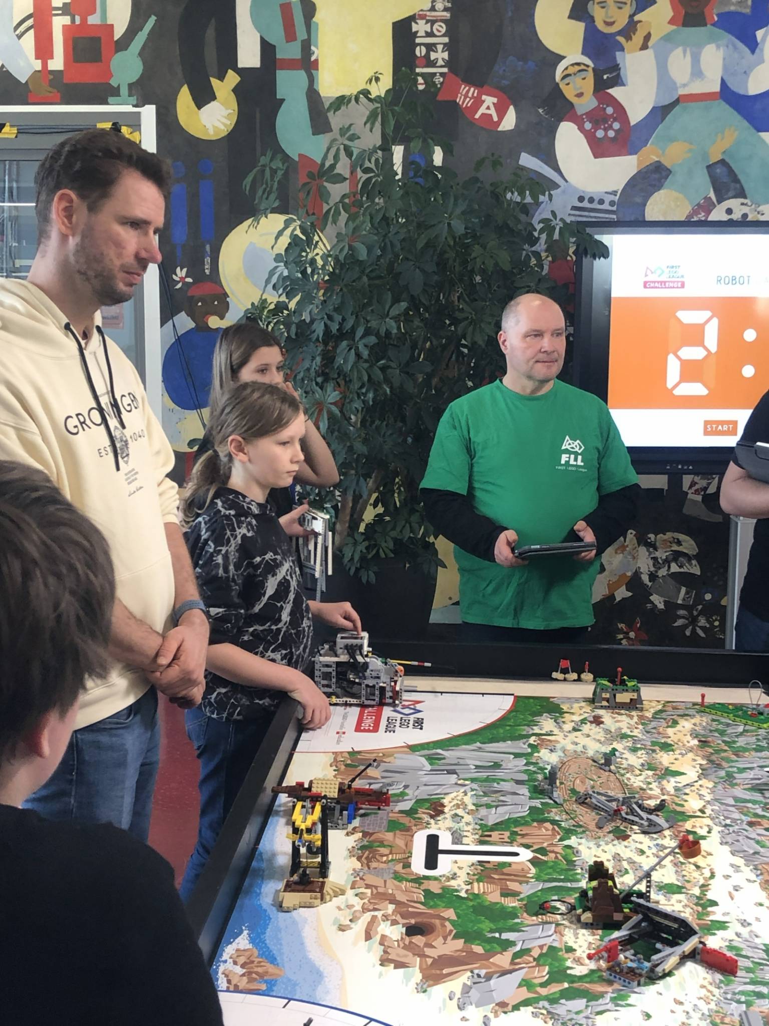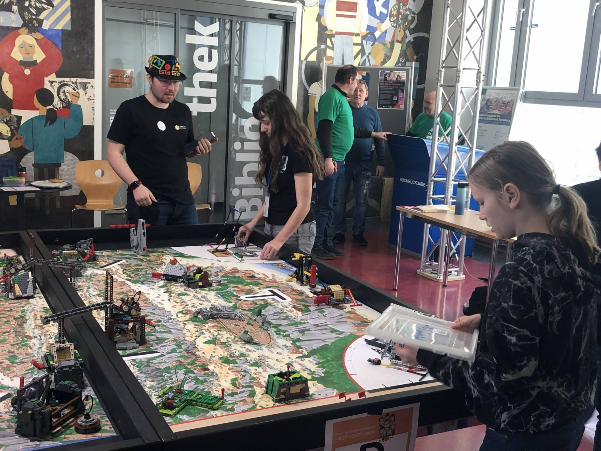 Als kleinstes und insgesamt jüngstes Team – alle Schülerinnen und Schüler gehen in die 6. Klasse – traten wir in verschiedenen Disziplinen gegen insgesamt 10 andere Teams im FLL-„Challenge“-Wettbewerb an. Zum diesjährigen Thema „Archäologie“ galt es, kniffelige Aufgaben mit einem zuvor gebauten und programmierten, autonom fahrenden LEGO-Roboter zu lösen, aber auch in einem Vortrag die Professoren der Hochschule davon zu überzeugen, dass man sich mit dem Thema Archäologie auseinandergesetzt hatte. In vielen Stunden hatten sich die Schüler des Teams mit dem Programmieren und Bauen des Roboters befasst, hatten ein Modell einer Ausgrabungsstätte gebaut und selbst eine archäologische Grabung durchgeführt. Am Ende durften sie sich über eine Anerkennung in der Disziplin „Roboterdesign“ und einen zweiten Platz in der Hauptdisziplin „Roboterwettkampf“ freuen – eine hervorragende Leistung im Wettkampf gegen viele ältere und erfahrenere Teams.