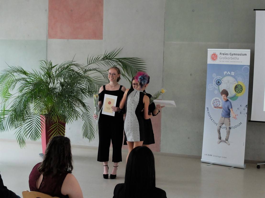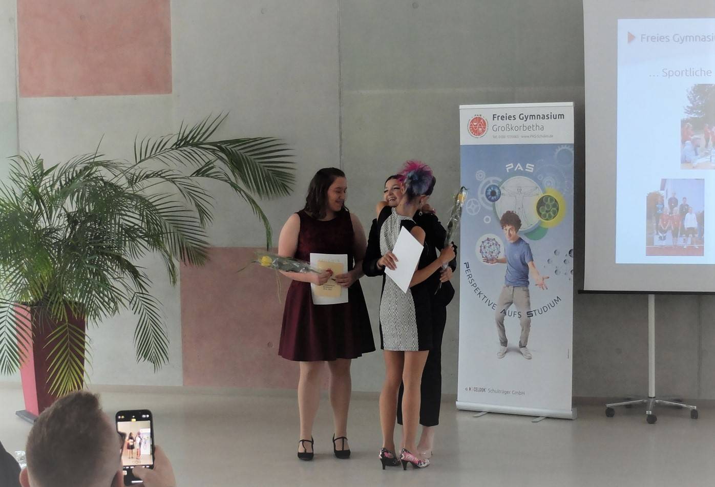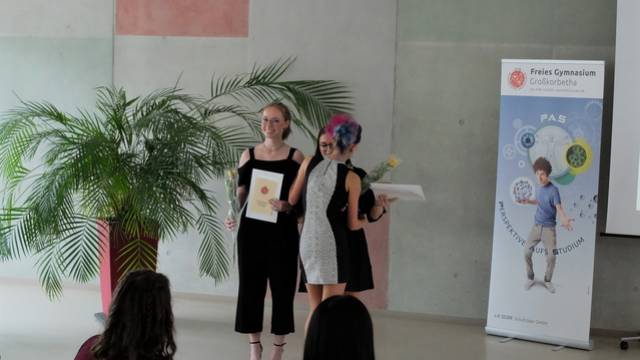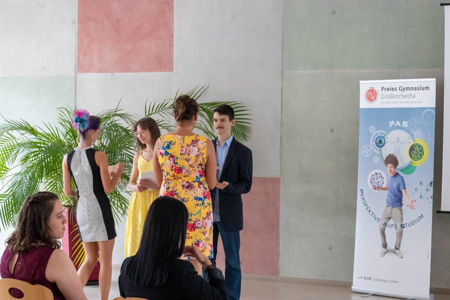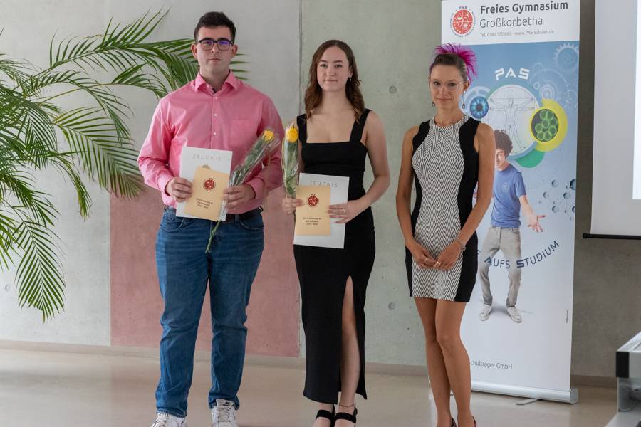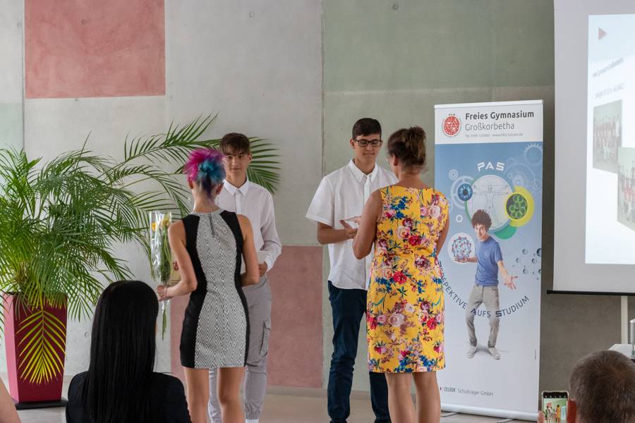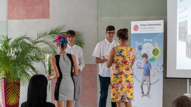 Unsere Abiturientinnen und Abiturienten der PAS des Abschlussjahrganges 2022 haben die letzten Jahre unter Beweis gestellt, dass sie beides beherrschen. Sie haben gezeigt, dass sie allgemeines und fachspezifisches Wissen sowohl empfangen und kreativ verarbeiten als auch anwenden und für den Gewinn eigener Erkenntnisse nutzen können. Sich als Lernender den damit verbundenen Herausforderungen zu stellen, hat sich gelohnt, denn am 07.07.2022 konnten unsere Absolventinnen und Absolventen als seither bester Jahrgang mit einem Durchschnitt von 2,28 im Rahmen einer Feierstunde in der Aula des Freien Gymnasiums Großkorbetha ihre Abschlusszeugnisse in Empfang nehmen. Der Gesamtdurchschnitt profitierte von den vier Abiturientinnen mit einem Durchschnitt von 1,X. Einen besonderen Beitrag leistete dazu Benita Mayerl mit einem Durchschnitt von 1,0.