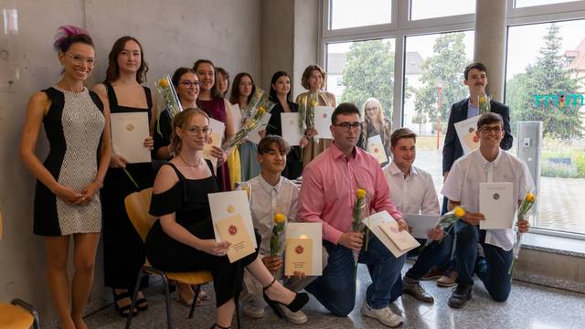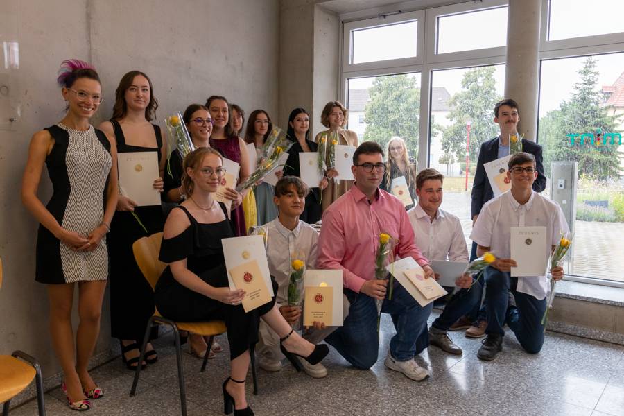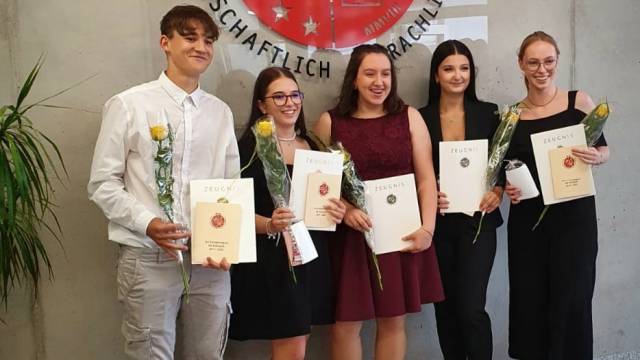 Zum Akt der feierlichen Zeugnisübergabe schauten die Gäste dann in strahlende Gesichter. Stolz präsentierten die jungen Erwachsenen ihre Zeugnisse.